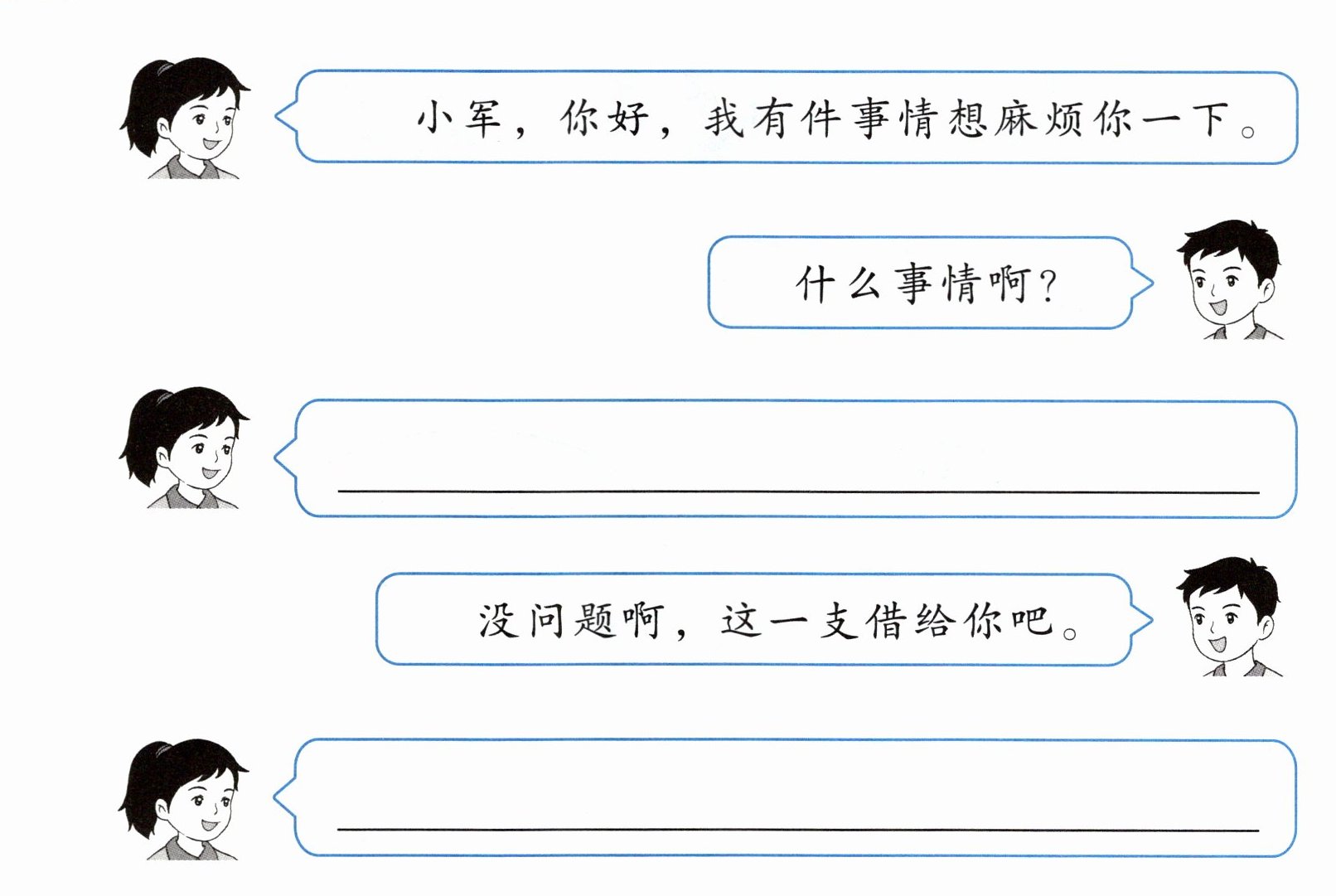 遇到下面的情况,你会怎样跟别人商量?和同学交流。