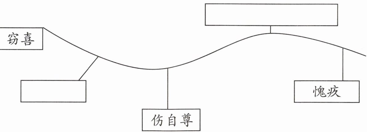 2. 读短文,在下图的空白方框里填上表示“我”的心情的词语。