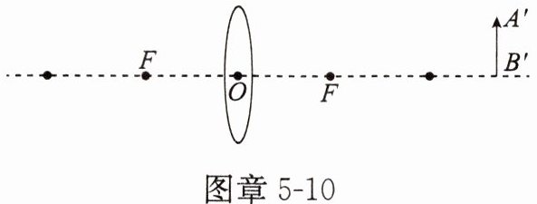 17. 如图章 5 - 10 所示,A'B'是物体 AB 经过凸透镜在光屏上所成的像,F 是凸透镜的焦点,请通过作图找出物体 AB 的位置(请按照光路作图的要求并保留痕迹)。