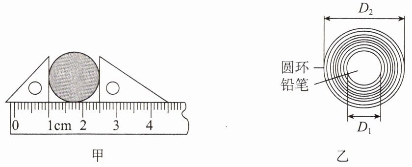(2)一条纸带厚薄均匀,小亮把这条纸带紧密地环绕在圆柱形铅笔上,直至恰好能套进一个圆环中,如图章 1 - 9 乙所示。纸带环绕了 $ n $ 圈,则纸带厚度是______(填序号)。