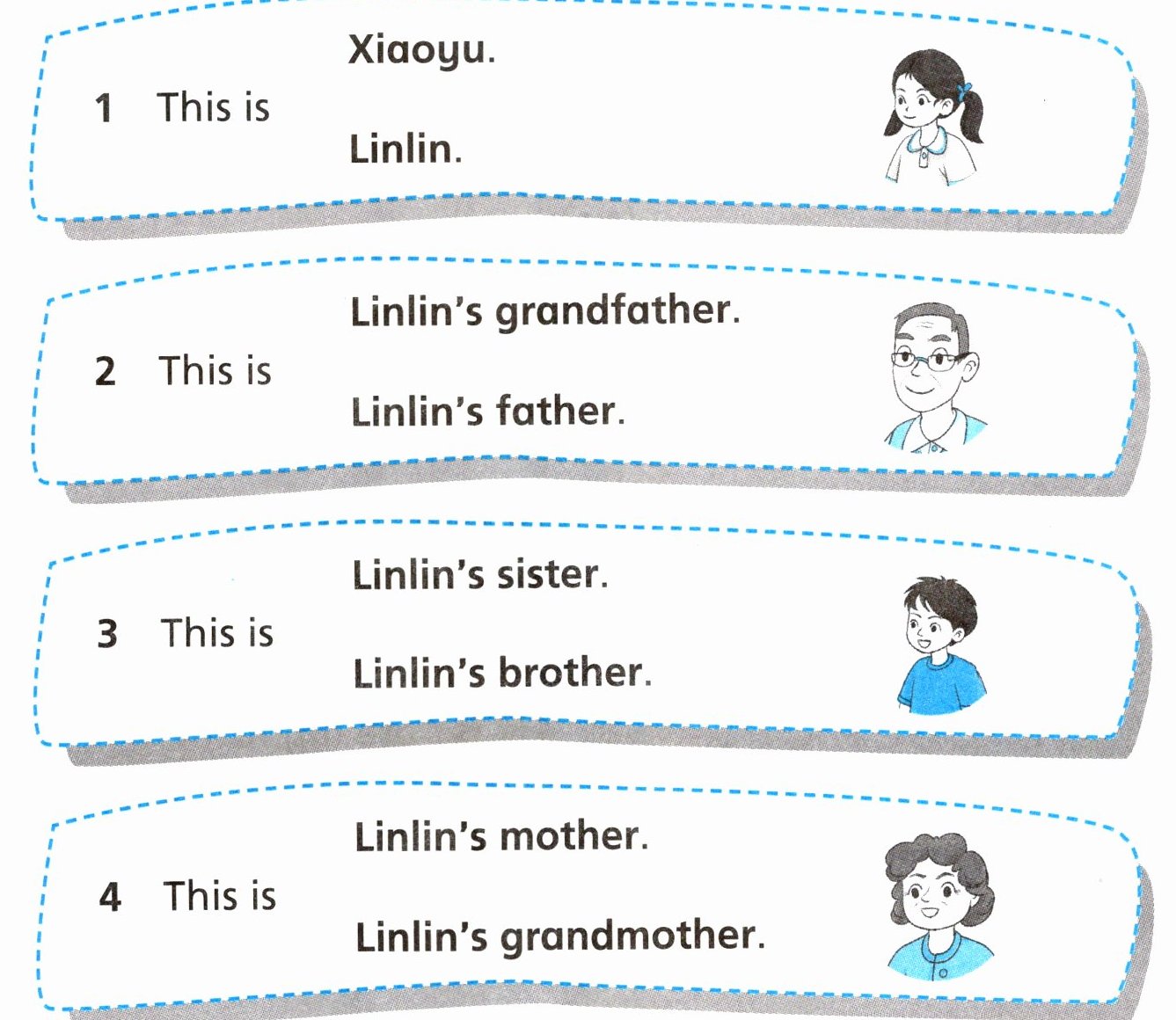 1. Linlin 2. Linlin's grandfather 3. Linlin's brother 4. Linlin's grandmother