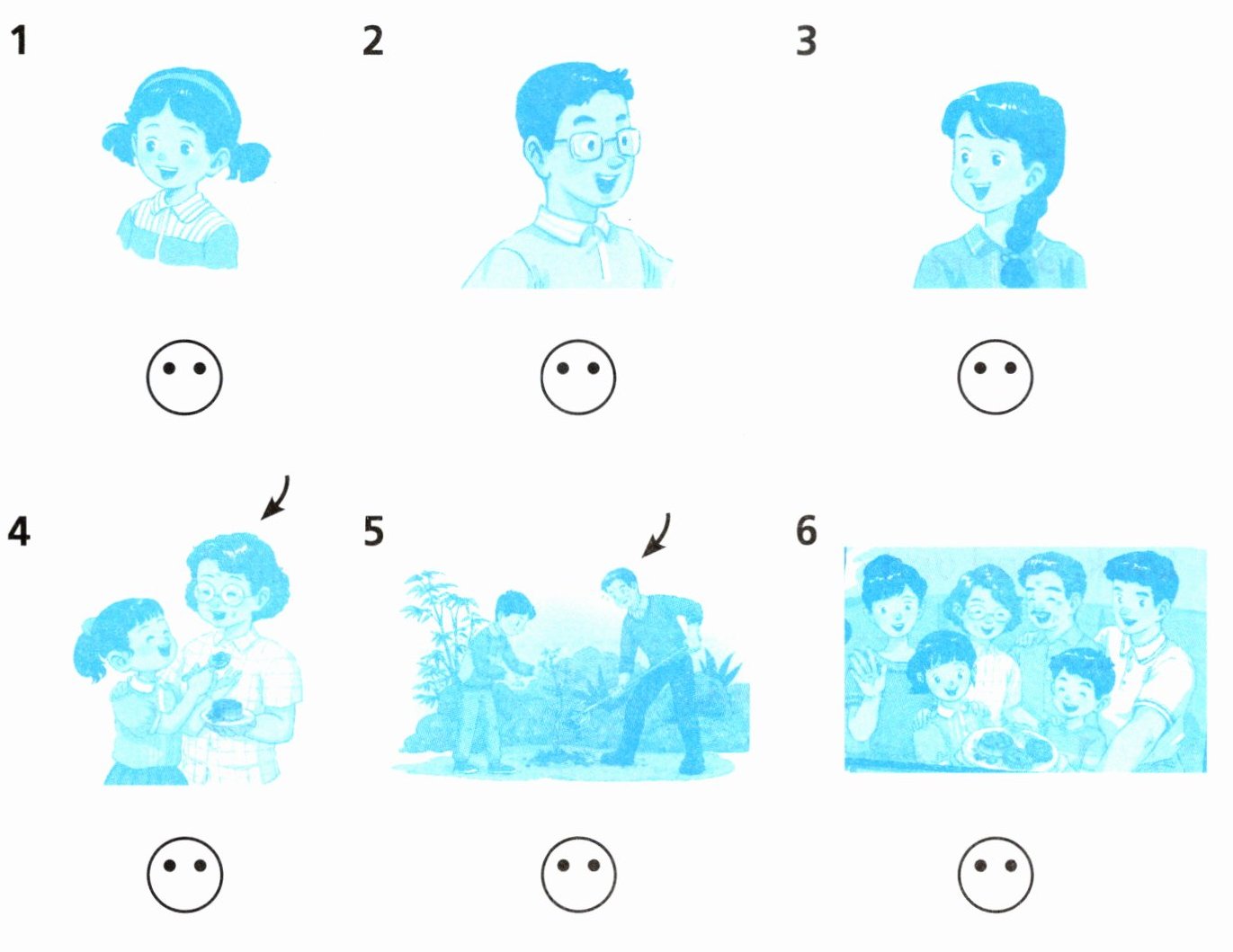 1. ☺ 2. ☺ 3. ☹ 4. ☹ 5. ☺ 6. ☺