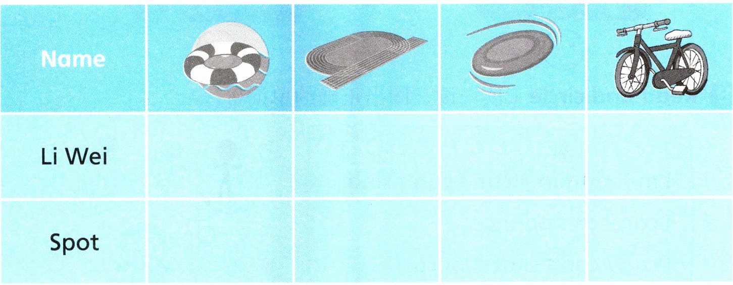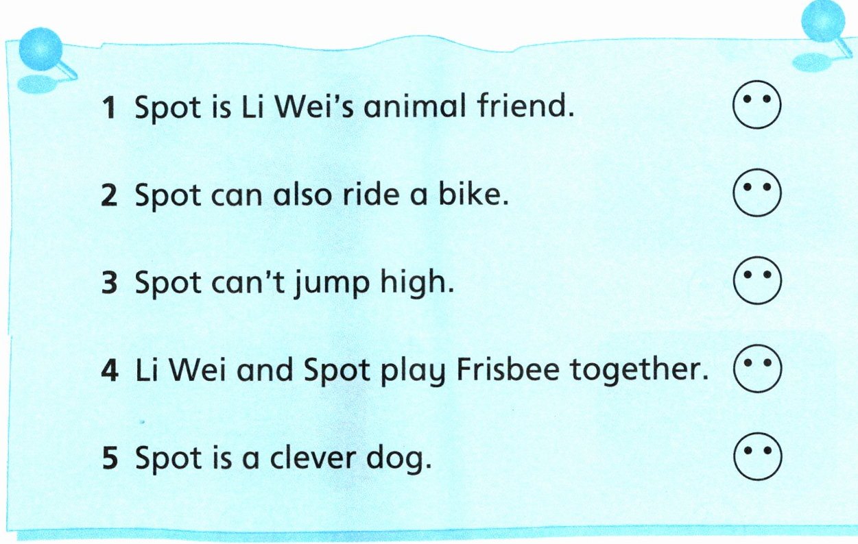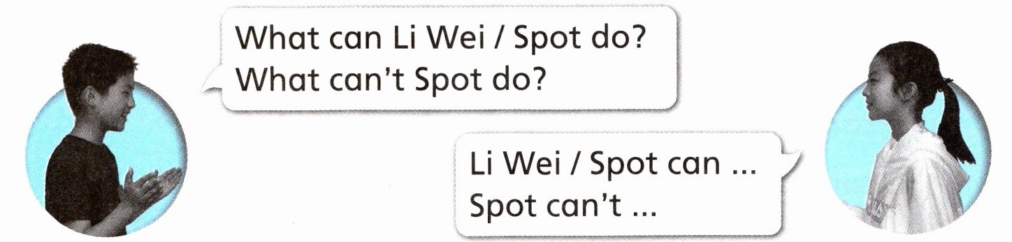 C Read, tick and talk(读一读,勾一勾 Li Wei 和 Spot 会做的事,然后互相问答)