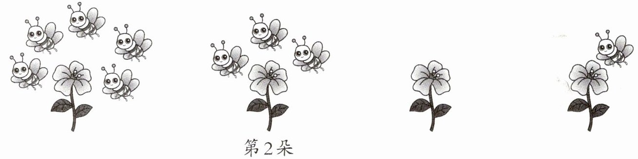 (1)第( )朵花周围的蜜蜂最多,有( )只。