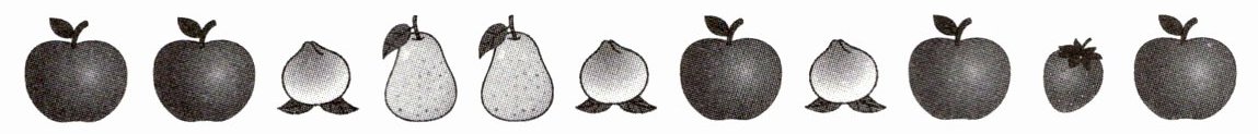 同样观察图片,数出草莓有$1$个;数梨的数量,可得梨有$2$个。