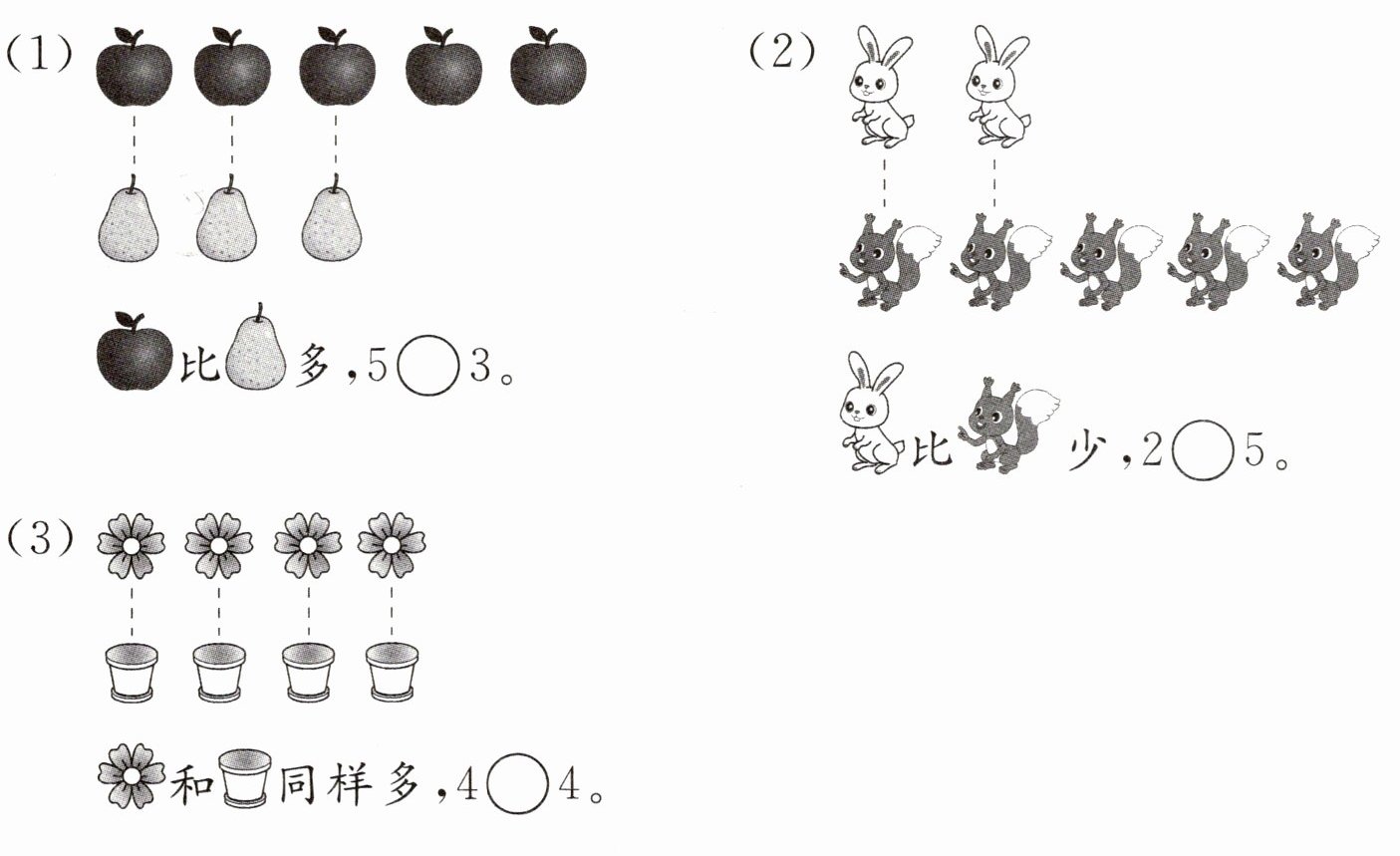 本题可通过分别数出对应水果的个数,再进行大小比较。