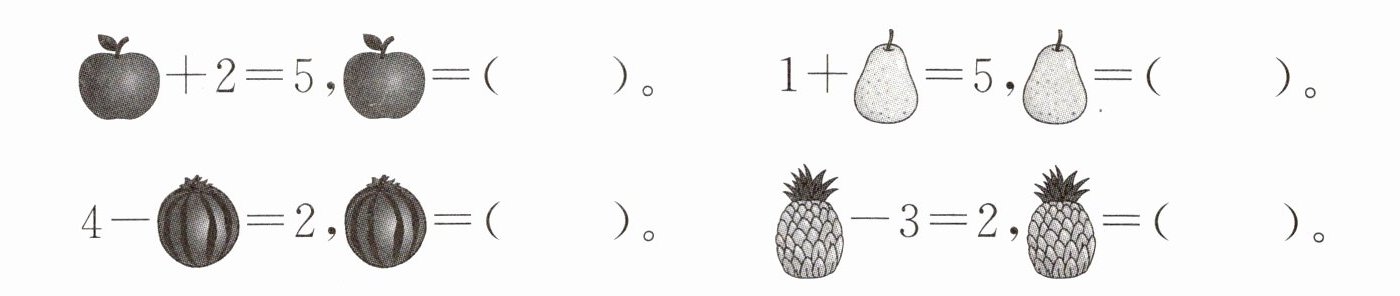 本题可根据等式的基本性质,通过移项来求解每个水果代表的数字。