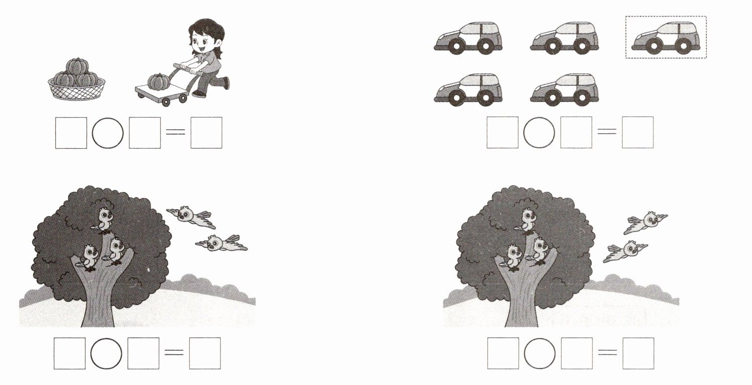 □-4= 1 □+2= 5 1+□= 2 3-□= 3+□