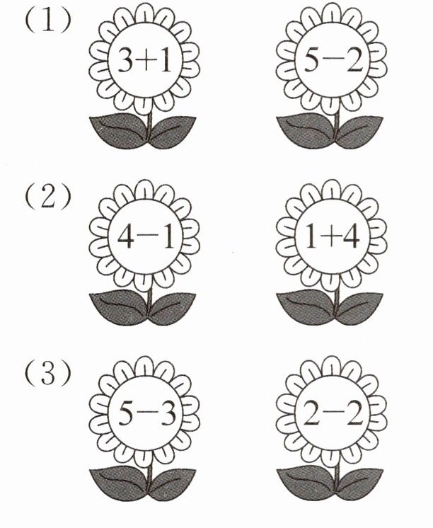 因为5>3,所以给“1 + 4”的花朵涂色。