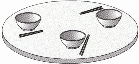 数一数,桌面上一共有( )只碗,有( )双筷子。