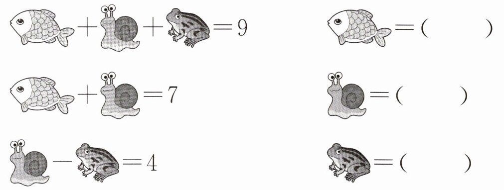 $ 鱼 = 1 $;$ 蜗牛 = 6 $;$ 青蛙 = 2 $。