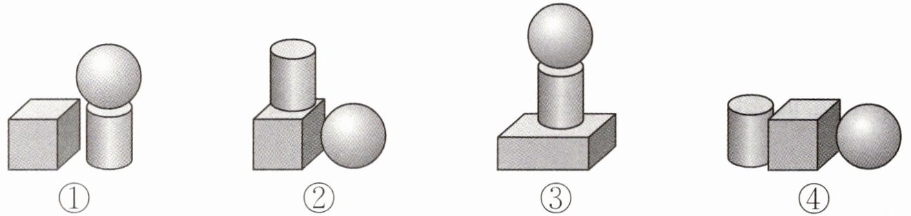 (4)把球放在圆柱的上面,正方体放在圆柱的左边。( )