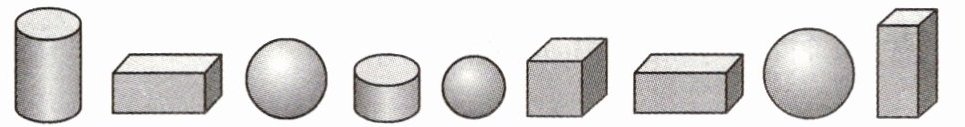 【解析】:按顺序数出长方体、正方体、圆柱、球的个数,分别为3、4、3、4。