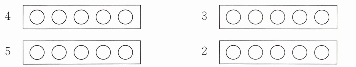 4. 看数分别补画出每个盘子里缺少的桃。