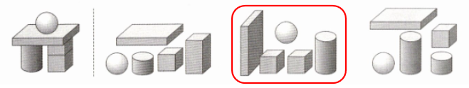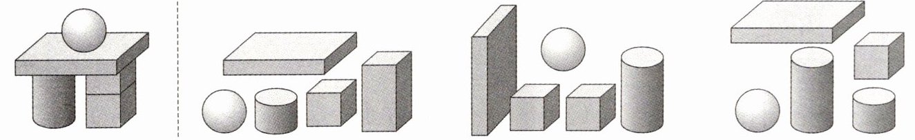 4. 用右边哪一组积木能拼成左边的物体?圈一圈。