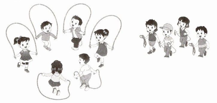 1. 操场上有6个小朋友在跳绳,又来了4个小朋友。一共有多少个小朋友?