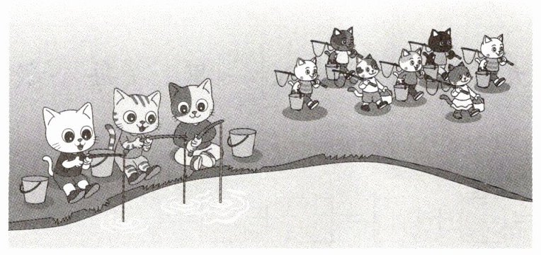 5. 原来有10只小猫在钓鱼,走了7只。还剩多少只?