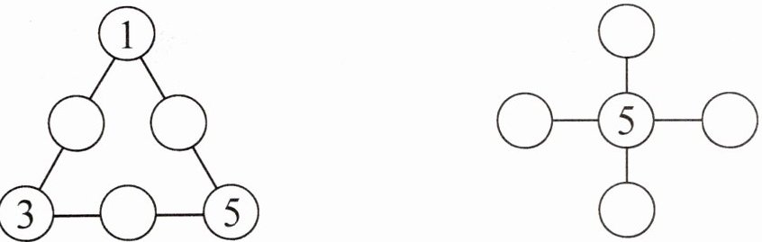 在○里填合适的数,使每条线上三个数连加都等于10。