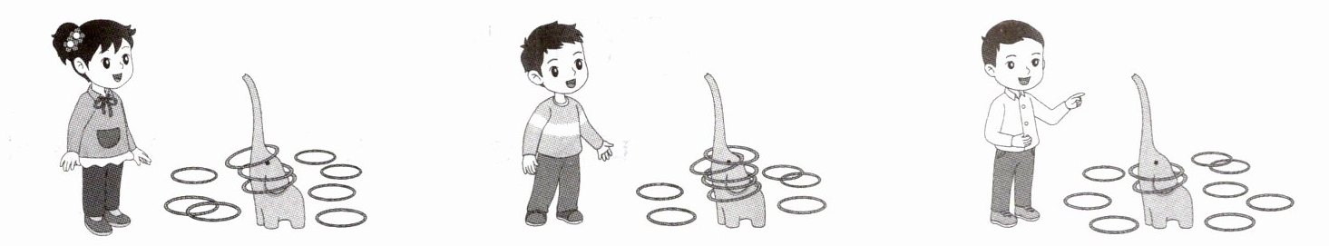 11. 每个小朋友都投了10次,先数一数套中的个数,再在( )里写出没有套中的个数。