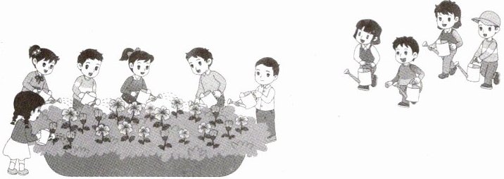 7. 原来有6个小朋友在浇花,又来了4个小朋友。一共有多少个小朋友?