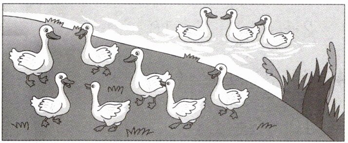 8. 一共有10只鸭,河里有3只。岸上有多少只?
