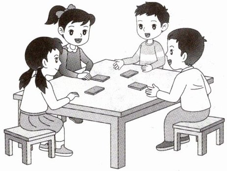 3. 四人一组,每人准备9张牌(从A到9),打乱后反扣在桌上。