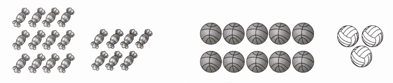 1. 先圈一圈或画一画,再写出得数。(每个表示10)