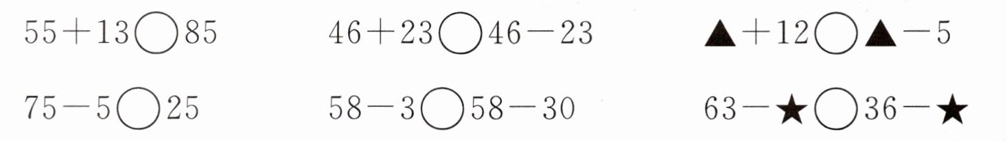 减数相同,被减数越大差越大($63\gt36$),所以$63−\bigstar\gt36−\bigstar$。
