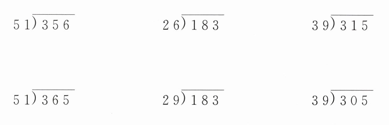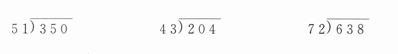 估计:$350÷51$,把$51$看作$50$,$350÷50 = 7$,估计商是$7$。