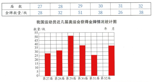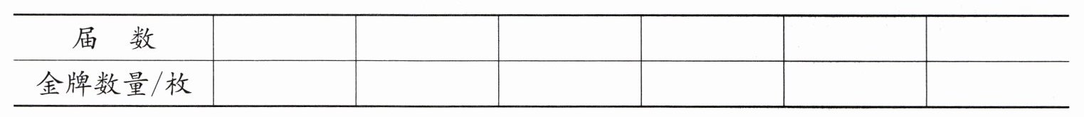 2. 下面是我国运动员在近几届夏季奥运会上获得金牌数量的资料,请用统计表整理资料,并完成统计图。