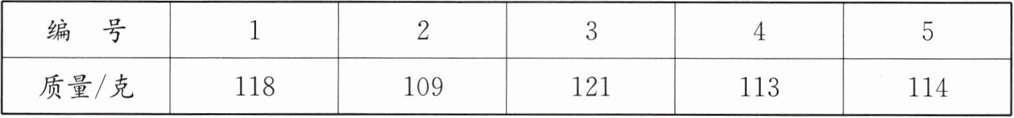 2. 一箱苹果共 30 个,任意取出 5 个分别称一称,结果如下表。