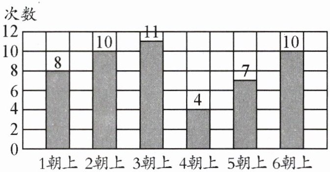 1. 强强做了一个小正方体,六个面上分别写着1~6这六个数字。他把这个正方体任意向上抛50次,结果落地后各数字朝上的情况如下图。