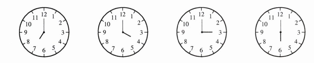 4. 先写出每个钟面上的时间,再写出分针和时针所组成的角的度数。