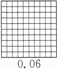 大正方形被等分为100个小方格,每个小方格表示0.01,0.06即涂色6个小方格。