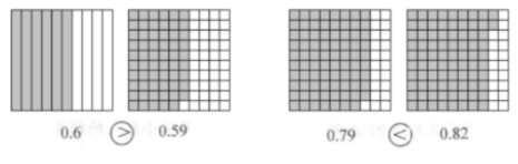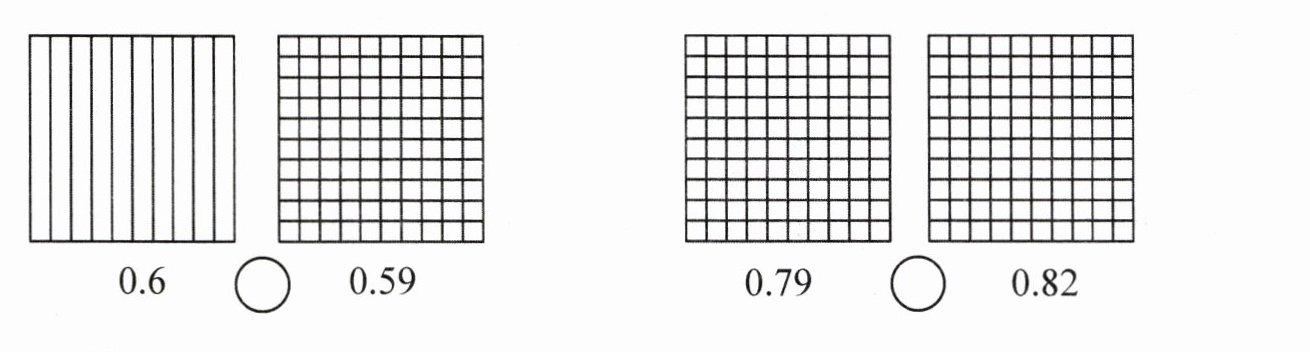 1. 每个大正方形都表示整数“1”,先涂色表示下面各小数,再比较大小。