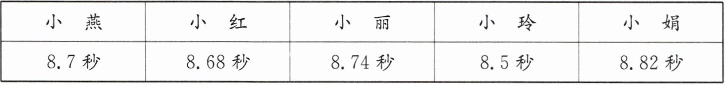 5. 五名同学参加$50$米赛跑的成绩如下表。