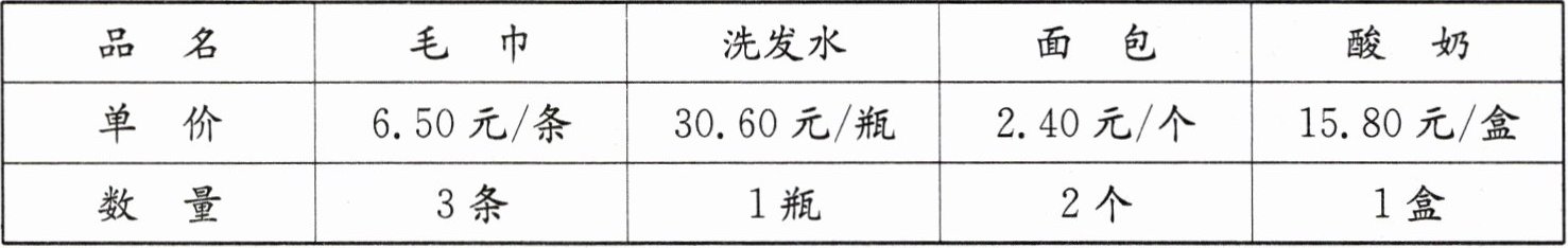 $3$条毛巾总价:$6.50 × 3 = 19.50$(元),