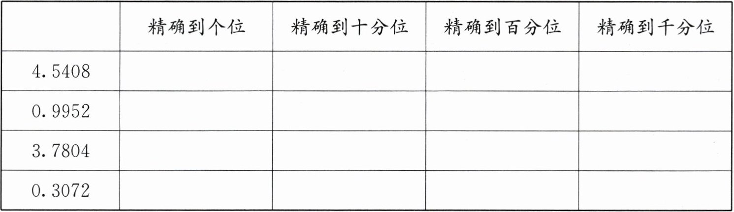 | | 精确到个位 | 精确到十分位 | 精确到百分位 | 精确到千分位 |