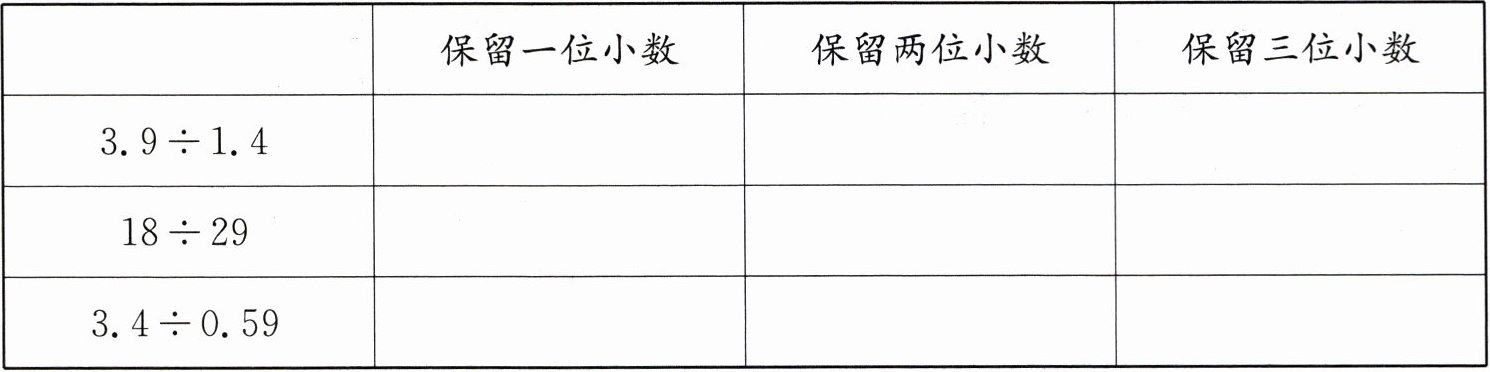 | | 保留一位小数 | 保留两位小数 | 保留三位小数 |