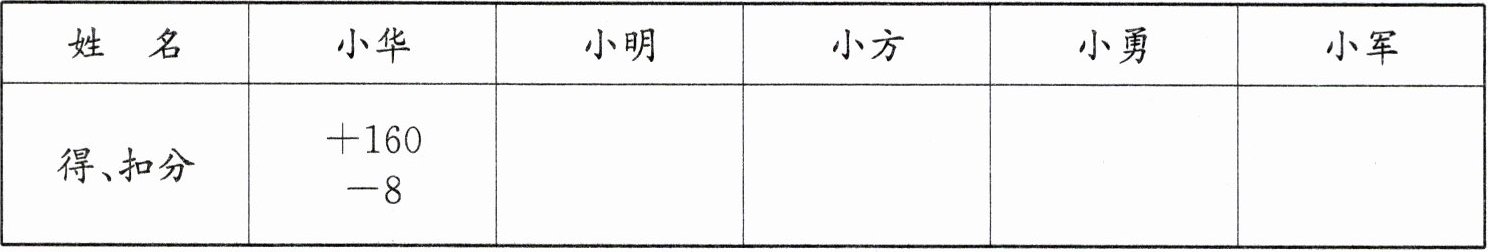 请在下表中用正、负数表示他们的得分和扣分情况。