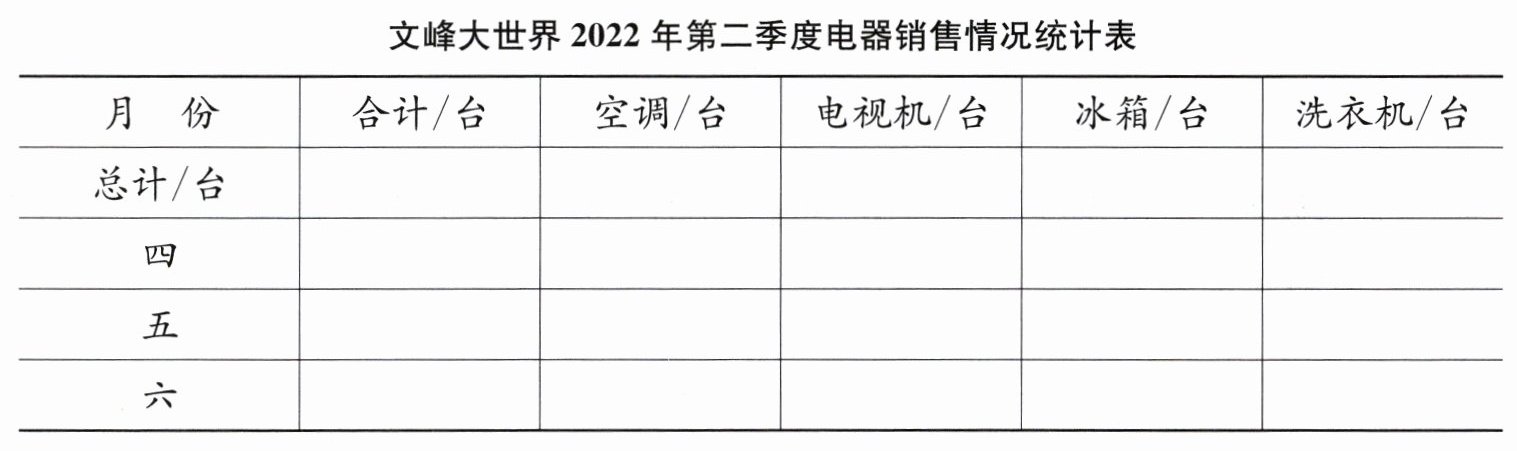 1. 文峰大世界 2022 年第二季度电器销售情况如下。