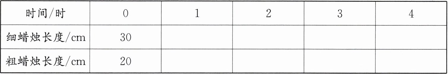 粗蜡烛每小时燃烧长度:$20÷4 = 5$(厘米/小时)
