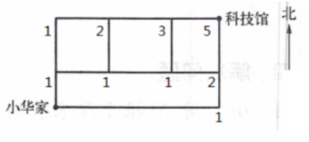 6. 如图,小华从家去科技馆,如果只能向东或向北走,一共有多少种不同的路线?