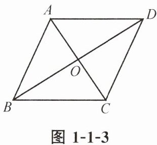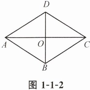 1. 如图 1-1-2,菱形 $ABCD$ 的两条对角线相交于点 $O$. 若 $AC = 6$,$BD = 4$,则菱形 $ABCD$ 的周长是( ).