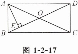 3. 如图1-2-17,在矩形ABCD中,对角线AC与BD相交于点O,过点A作AE⊥BD,垂足为点E。若∠EAC= 2∠CAD,求∠BAE的度数。
