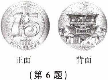 6. 如图所示的是2024太原马拉松15周年纪念徽章,徽章整体呈银色,正面记录着太原马拉松创办至今的历史,背面的雁丘园代表着千年晋韵独特的魅力. 任意掷两枚质地均匀的这种纪念徽章,恰好都是正面朝上的概率是(