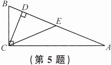 5. 如图,在$Rt\triangle ABC$中,$\angle ACB = 90^{\circ}$,$CD \perp AB$于点D,点E是AB的中点,连接CE. 若$\angle A = 22^{\circ}$,则$\angle DCE$的度数为(
