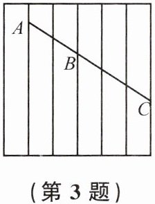3. 如图所示的是一张书法练习纸,其中的竖格线都互相平行,且相邻两条竖格线间的距离都相等. 不同竖格线上的三点A,B,C在同一直线上. 若线段$AB = 3\ cm$,则线段BC的长为(