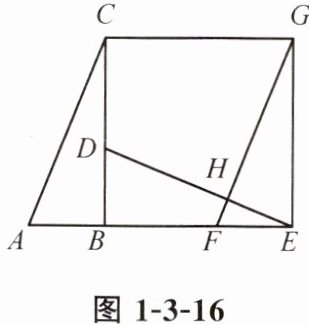 6. 如图1-3-16,在Rt△ABC中,∠ABC= 90°,先把△ABC绕点B顺时针旋转90°后至△DBE,再把△ABC沿射线AB平移至△FEG,且DE与FG相交于点H。