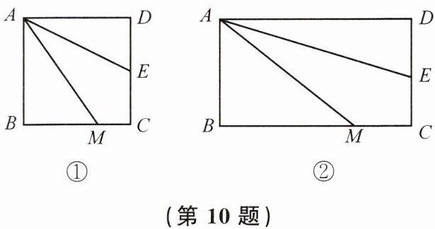 10. 如图①,四边形 ABCD 是正方形,M 是 BC 边上一点,E 是 CD 边的中点,AE 平分∠DAM.
